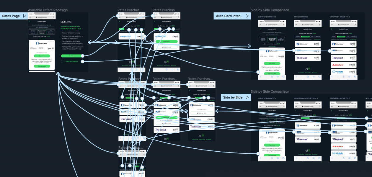 Remotely led UX/UI and user-flow design direction of digital products to provide real-time insurance leads, live transfer calls, and online click solutions to connect agents and carriers to in-market consumers shopping for new auto and home insurance. Created and maintained design system patterns used to streamline UX/UI design efficiencies using typography scale principles, iconography standards, and grid column systems for responsive design. Rapid prototyping of user experiences within focused application interactions, including wireframe and high-fidelity deliverables to encompass business directives and approval.